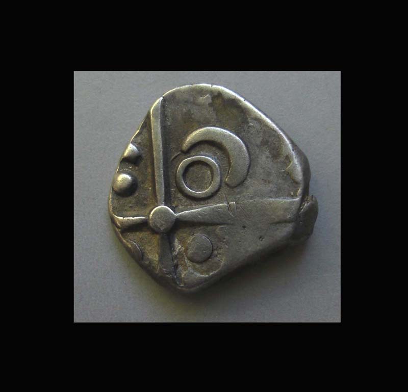 Beginnen möchte ich mit einer Variante des Tectosagenkreuzes auf einer Drachme der Tolosaten (Reg. Midi- Pyrenees, Gegend um Vieille- Toulouse),