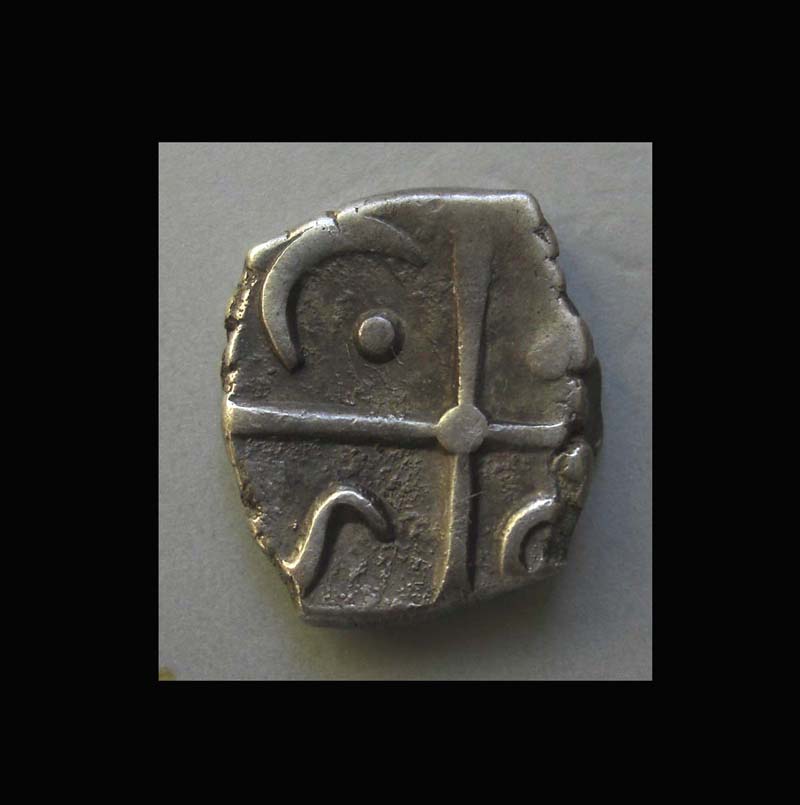 Rv.: Kreuz mit breiten Balken und Mittelpunkt, in den Winkeln S-Schleife/ Kreis mit Halbbogen/ Punkt/ Halbbogen mit Punkt.