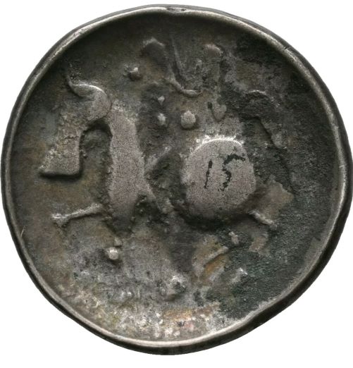 Bei dieser Tetra ist am Hinterteil des Pferdes die Tuschziffer 15 angebracht. Als Literatur wurde Göbl, OTA Tf. 25 Nr. 296/8 angeführt.