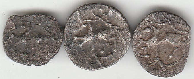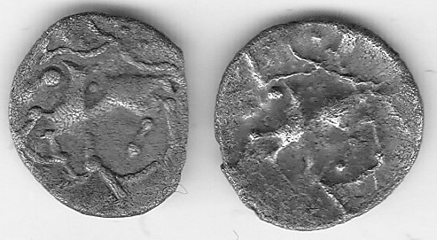 Hier scheint der Stempel bereits nachgeschnitten worden zu sein. Es kann jedoch auch sein, dass dies nur aufgrund der starken Abnutzung so wirkt. Ich gehe jedoch von erstem aus. Auch zeigt sich am Hals/Kopf des Pferdes was ich oben bereits beschrieben habe.