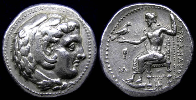 Als erste Münze in diesem Thread möchte ich dieses beeindruckende Großsilber präsentieren, geprägt während der letzten drei Lebensjahre des berühmten Makedoniers: