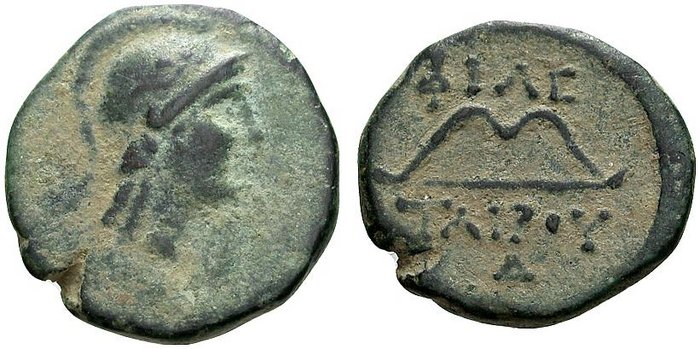 Rv.: ΦIΛE - TAIΡOΥ; Bogen, unten im Feld Δ.