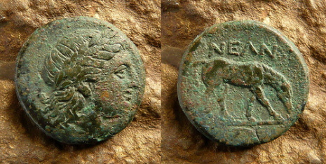 Rs: NEAN , Horse grazing right. in exergue, corn grain