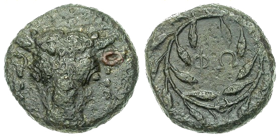 Aus Larisa kommt hier eine weitere Münze, die zeitlich vor das en-face-Portrait der Nymphe zu datieren ist.