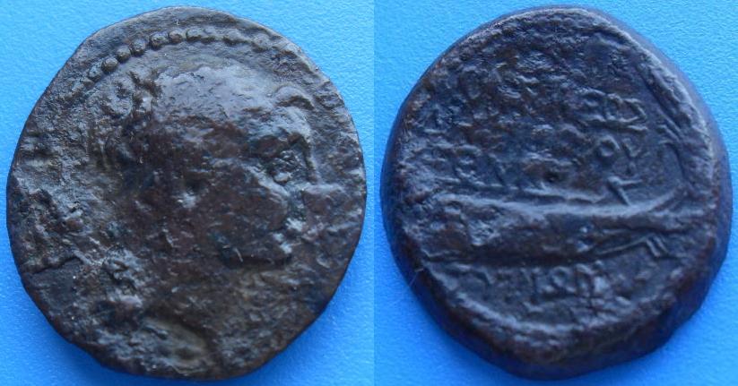 Demetrios I. Soter († 150 v. Chr.) war ein König des Seleukidenreiches. Er war der älteste Sohn des Königs Seleukos IV. und wohl der Laodike. Demetrios wurde 178 v. Chr. von seinem Vater als Geisel nach Rom gesandt, im Tausch für seinen Onkel Antiochos IV. und als weitere Garantie für die Einhaltung des Friedens von Apameia. Da er bei der Ermordung seines Vaters 175 v. Chr. noch unmündig war, überging der römische Senat seine Erbansprüche und akzeptierte die Machtübernahme des Antiochos IV. in Syrien. Aber nachdem dieser 164 v. Chr. starb, lehnte der Senat das Ersuchen des Demetrios um eine Freilassung ab und erkannte stattdessen die Herrschafts des Antiochos V. an. Als im Jahr 162 v. Chr. der römische Gesandte Gnaeus Octavius in Laodikeia ermordet wurde, erkannte Demetrios darin die Chance, von seiten Roms als rechtmäßiger König anerkannt zu werden. Mit der Hilfe des Geschichtsschreibers Polybios floh er aus Rom und landete in Tripolis an. Von dort aus organisierte er die Ermordung des minderjährigen Antiochos V. und dessen Ministers Lysias, womit er sich als Alleinherrscher in Syrien etablieren konnte. Seine Herrschaft erlangte aber nicht wie erhofft die Anerkennung des römischen Senats, obwohl Demetrios sowohl den Mörder des Gnaeus Octavius als auch den makedonischen Rebellen Andriskos an Rom auslieferte. Gegenüber seinen Nachbarn verfolgte er eine Expansionspolitik, womit er sich Armenien, Kappadokien, Pergamon und Ägypten zu Feinden machte. Im Jahr 160 v. Chr. besiegte Demetrios den medischen Satrapen Timarchos, welcher sich nach dem Tod des Antiochos V. in Babylon zum unabhängigen König erhoben hatte. Damit konnte er den Erhalt Babylons für das Seleukidenreich sicherstellen, von den Einwohnern der Stadt erhielt er dafür den Ehrennamen Soter (griechisch für „Retter“) verliehen. Anschließend beabsichtigte Demetrios Judäa und Jerusalem wieder unter seine Kontrolle zu bringen, das sich seit der Herrschaft des Antiochos IV. in dem sogenannten Aufstand der Makkabäer vom Reich los löste. Bereits 161 v. Chr. hatte er seinen General Nikanor in diese Unruheprovinz entsandt, der aber in der Schlacht bei Adasa besiegt und getötet wurde. Darauf sandte er Bakchides mit einem Heer aus, dem im März 160 v. Chr. in der Schlacht von Elasa schließlich ein entscheidender Sieg gelang, indem der Führer des Aufstandes, Judas Makkabäus, getötet wurde. Aufgrund seiner in Rom angeeigneten Sitten zog sich Demetrios den Hass der orientalischen Bevölkerung zu, so dass die Erfolge seiner ersten Herrscherjahre stets gefährdet wurden. Die Familie des von ihm gestützten Timarchos baute einen Mann namens Balas als Prätendenten gegen ihn auf, indem sie diesen als einen Sohn des Antiochos IV. deklarierten. Unterstützt wurden sie darin von Pergamon und Ägypten, auch der jüdische Aufstand unter der Führung des Jonathan erhielt dadurch neuen Aufwind. Nachdem die Abstammung des Balas auch vom römischen Senat anerkannt wurde, bemächtigte sich dieser mit Hilfe des Königs Ptolemaios VI. von Ägypten der Hafenstadt Ptolemais (heute Akkon), von wo aus er eine Gegenregierung aufbaute. Balas setzte unter anderem 153 v. Chr. den aufständischen Jonathan als Hohepriester in Jerusalem ein, was den Beginn der Herrschaft der Hasmonäer über die Judäaer markierte. Im Jahr 150 v. Chr. ging Balas militärisch in die Offensive. Von ihm wurde Demetrios in Syrien zur Schlacht gestellt, besiegt und getötet. Demetrios I. war wohl mit seiner Schwester Laodike verheiratet, die zuvor bereits mit König Perseus von Makedonien verheiratet gewesen war. Ob sie auch die Mutter seiner Kinder war, ist nicht genau überliefert, zumal Demetrios mehrere Geliebte hatte. Laodike wurde, wie auch der jüngste Königssohn, bei dem Machtwechsel von 150 v. Chr. ermordet. Die Söhne des Demetrios waren: - Demetrios II. Nikator (* um 165 v. Chr., † 126 v. Chr.) - Antiochos VII. Sidites (* 164 v. Chr., † 129 v. Chr.) - Antigonos († 150 v. Chr. ermordet) Bronze AE22, 7.32 g, Jahr 159 (154/153 v. Chr.) Av: Belorbeerter Kopf nach rechts. Rvs: BAΣIΛEΩΣ ΔHMHTPIOY LΘNP (= Jahr 159) über dem Heck einer Galeere nach links, darunter TYPIΩN. Bronze AE20, 5.67 g, Jahr 158 (155/154 v. Chr.) Av: Belorbeerter Kopf nach rechts. Rvs: BAΣIΛEΩΣ ΔHMHTPIOY LHNP (= Jahr 158) über dem Heck einer Galeere nach links, darunter TYPIΩN. Gruß Franz