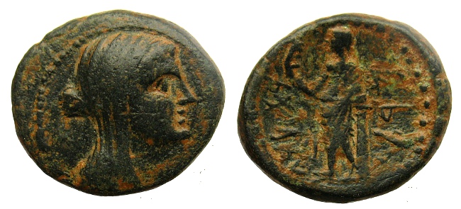 Av.: Verschleierte weibliche Büste (Berenike II.?) n. re.