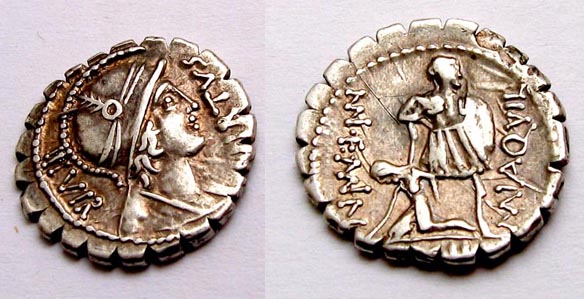 Die Prägung bezieht sich auf den 2. Sklavenkrieg 104-100 vuZ zu dessen Beendigung der Grosspapa des besagten Herrn Aquillius anscheinend entscheidend beigetragen hat.