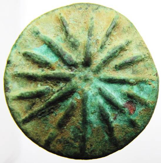 das schöne Stück wiegt 62,5 g und hat einen Durchmesser von 3,6-3,7 cm Ich habe es 2007 in Rom um 50 Euro erworben, ein echtes Schnäppchen, es hat aber einen kleinen Fehler: es ist eine moderne Fälschung! Es ist kein Wunder daß Ihr nicht draufgekommen seid: hier hat man mit diesen Dingen nichts zu tun und kaum jemand hat soetwas schon gesehen. Ich könnte mich jetzt aufspielen und behaupten, ich hätte sofort durchschaut, daß das Stück nicht echt ist und es als Briefbeschwerer erworben, aber die Wahrheit ist: veni, vidi, erravi! d. h., ich bin selbst auch hineingefallen! Die Aes grave Stücke wurden gegossen, mehrere zusammenhängend hintereinander, und dann auseinandergebrochen, so daß die meisten oben und / oder unten ausgebrochen sind. Die Exemplare des römischen Händlers waren aber an den Rändern alle unbeschädigt! Als ich das zweitemal dort war, hatte er eine ganze Schachtel voll davon, wirklich Prachtstücke, große und kleine, auch doppelte!, aber da hatte ich bereits im Internet gesucht... Warum haben die Fälscher geglaubt, sie müßten perfekte Güsse herstellen! Sie haben sich selbst das Geschäft verdorben! Questi sono idioti! Freilich, die Patina ist herrlich! Im Anhang das Bild eines echten Quadrans... sind eher selten...