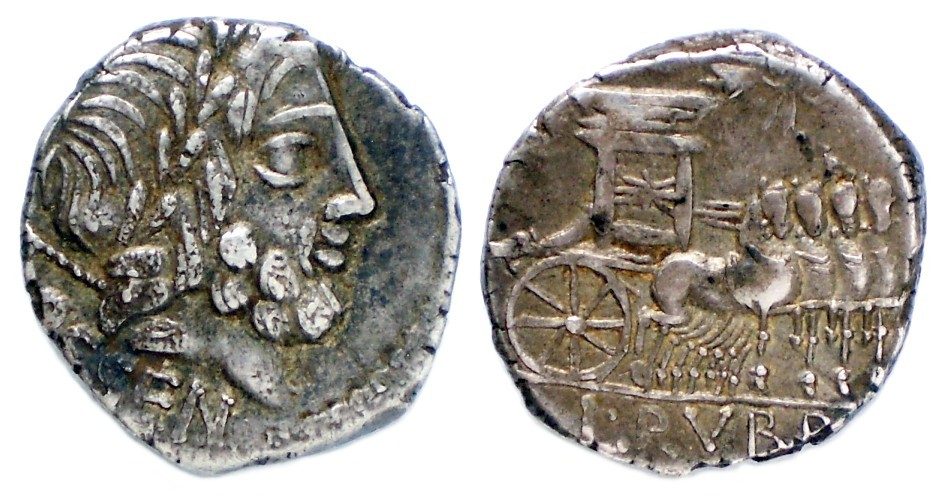 Die Münze steht vor dem Hintergrund der Phase des Bürgerkrieges, die von der Auseinandersetzung zwischen Marius (Popularen) und Sulla (Optimaten) geprägt war. Die Triumphalquadriga und die Victoria auf dem Revers wird als Hinweis auf einen von den Optimaten erhofften Sieg über Marius gedeutet. Diese Hoffnung erfüllte sich jedoch nicht. Marius eroberte Rom und übte blutige Rache an den Anhängern Sullas.
