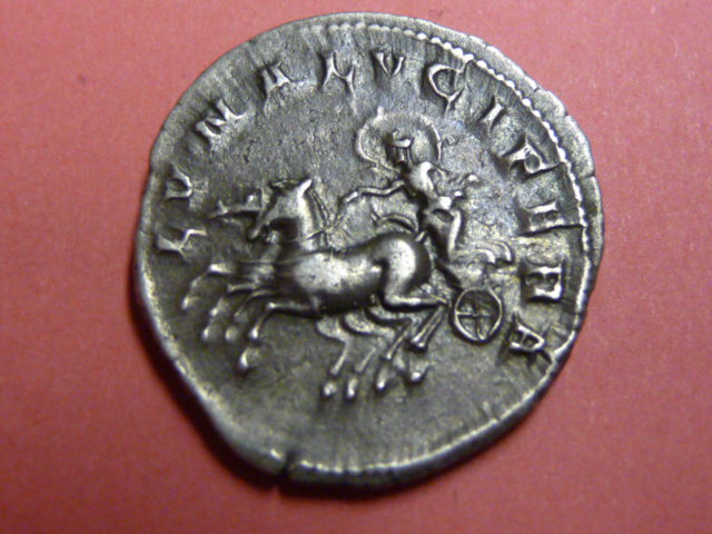 Zum Thema Severer möchte ich mich mit einem relativ seltenen Denar mit historisch interessanter Rückseitendarstellung anschließen.