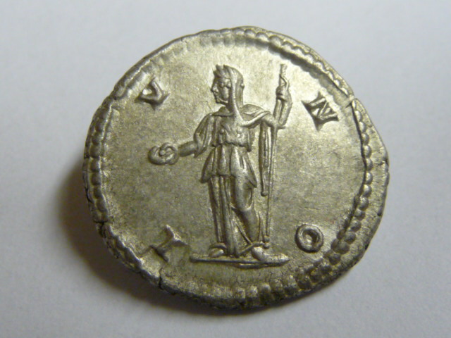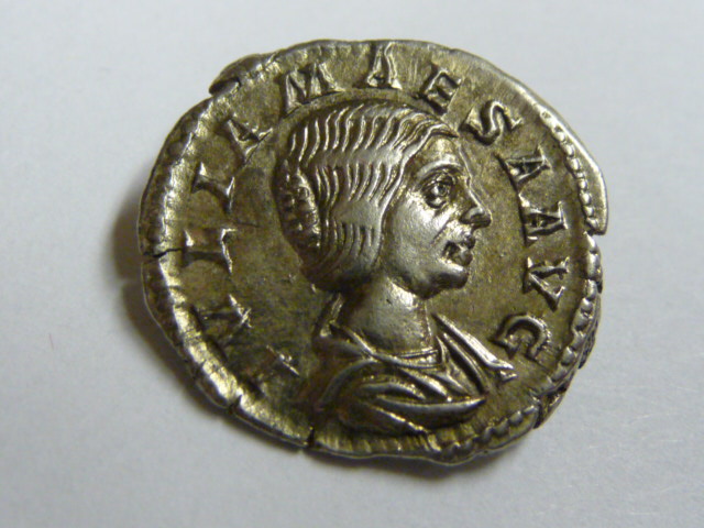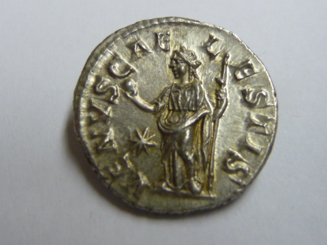 Von ihr dominiert ein einziger Rückseitentyp die gesamte Münzprägung, nämlich Venus Caelestis sitzend oder stehend. Dieser Typ macht 98% (geschätzt) ihrer Münzprägung aus. Dann gibt es noch die Antrittsausgabe, die ich hier vorstellen möchte. Alle anderen Typen sind Hybridprägungen oder antike Fälschungen (oder natürlich moderne...).