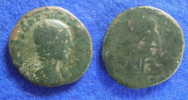 Die Antrittsprägungen unterscheiden sich von den üblichen späteren Emissionen dadurch, daß auf der Vs. AUGUSTA ausgeschrieben ist; der Rs.-Typ der Denare (sowie Aurei von absurder Seltenheit) ist IUNO REGINA, auf den Bronzen findet sich Cybele mit der Inschrift MATER DEUM (altertümlicher Genitiv Plural), wie bereits für Domna eine Anspielung auf ihre Rolle als Mutter des gottgleichen Kaisers. Hier also der Denar und der Dupondius der ersten Emission. Der Dupondius ist natürlich von der Erhaltung her an der Grenze der Sammelwürdigkeit, aber bei solchen Münzen kann ich kann nicht anders, als ihnen ein Zuhause zu geben. Und der Preis war nicht der Rede wert (5 Euro).