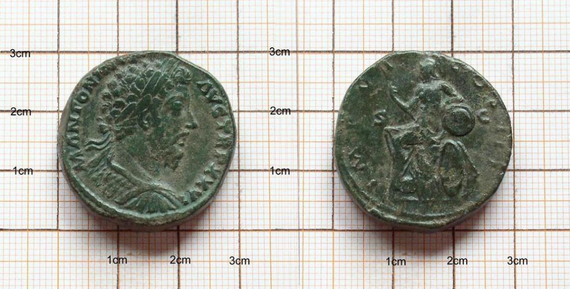 Übrigens, zu der ersten Münze wäre es noch wichtig zu wissen, ob es sich um einen Sesterzen oder um ein As handelt. Also: Sesterz = ca. 29-32 mm, 19-25 g, blanke Metallstellen messing-gelb; As = ca. 25-28 mm, 8-15 g, Metall kupfer-rot.
