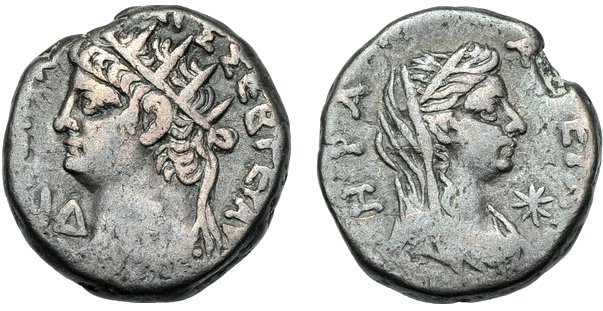 Rv.: EPA APΓEIA; drapierte Büste der Hera Argeia mit Schleier n. re. Im Feld rechts Stern.