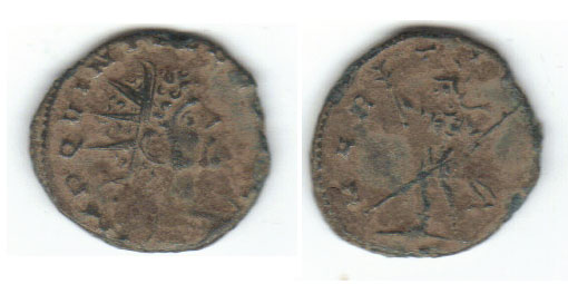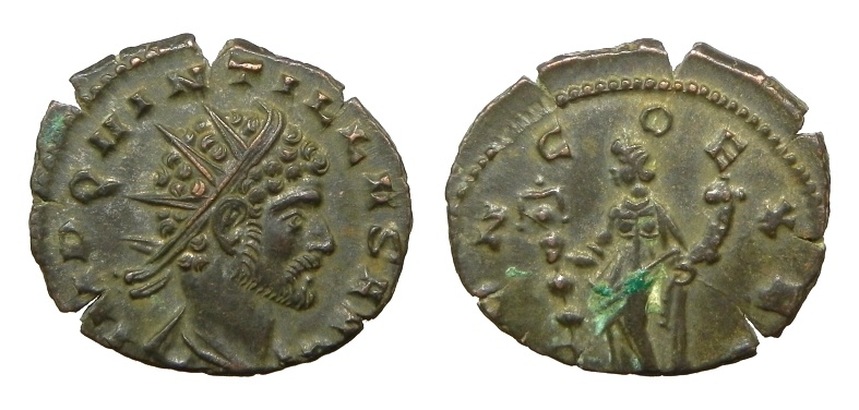 IMP QVINTILLVS AVG, radiate, draped bust right