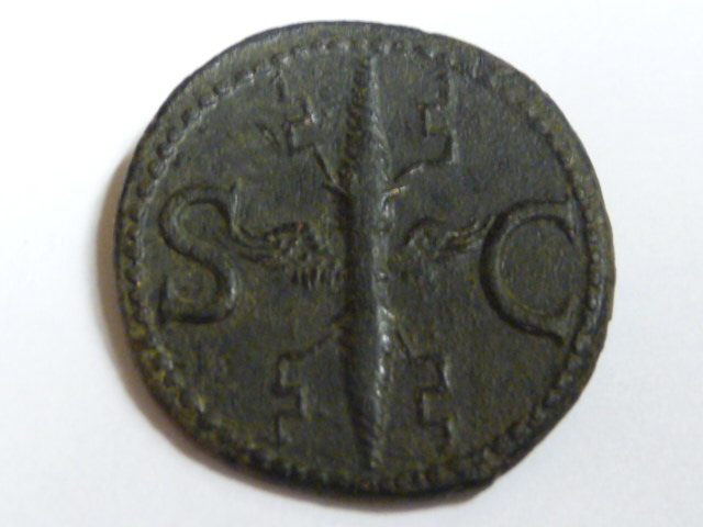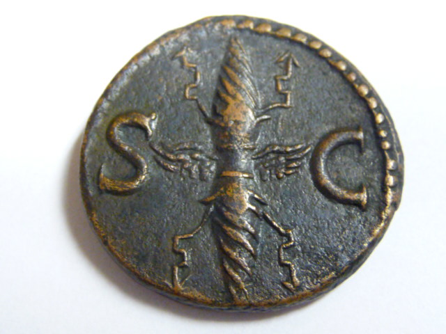 C. Asinius C.f. Gallus ist einer der häufigeren Münzmeister des Augustus. Auf den Sesterzen ist sein Name voll ausgeschrieben, auf den im RIC verzeichneten Dupondien und Assen fehlt das CF für Caii Filius. Da hier das ganze Wort GALLUS fehlt, vermutete ich zunächst eine zeitgenössische Imitation, zumal ein As dieses Typs im CBN aufgeführt ist. Aber mit der Münze in der Hand deutet wirklich nichts auf eine Barbarenprägung hin. Der Schrötling ist aus dem richtigen Metall, Größe, Dicke, Form und Gewicht stimmen, ebenso die Stempelorientierung. Die Buchstaben sind wie häufig etwas flach, aber v.a. auf der Vorderseite sehr gut geformt, auch mit dem charakteristischen überhöhten T in Augustus. Ich denke, hier haben wir es mit einer echten Variante aus Rom zu tun. Auch der Vorbesitzer meines RIC hat darin ein solches Stück eingetragen, aus einer Auktion "Sch 4.88" als Los 336. Dazu habe ich allerdings kein Bild.