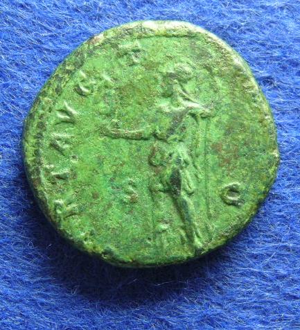 Leider ist der Schrötling sehr klein, so daß die rechte Hälfte der Rs.-Legende fehlt; theoretisch wäre auch VIRT AUG TRP COS möglich, aber da das T noch ziemlich unorganisch auf die linke Seite gequetscht wurde, hat man scheint's den Platz rechts für mehr Buchstaben gebraucht. Sonst ist das Stück für diese frühen Bronzen ungewöhnlich hübsch erhalten.