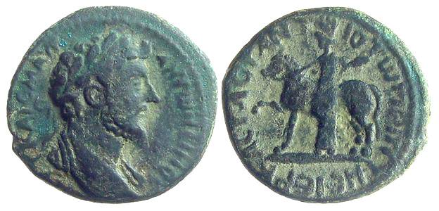 Anm.: NCP = Imhoof-Blumer & P. Gardner, Numismatic Commentaries on Pausanias, London 1887. Der Neudruck von 1964 zeigt 3 Münzen mit Hippolytos, davon ein Ex. Hippolytos als Jäger mit Hund. Das wird diese Münze sein. Pausanias erwähnt 'eine archaische Statue'. Möglich, daß es sich dabei um diese Abb. handelt (Pat Lawrence)
