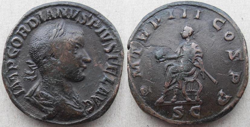 Ich kann jetzt einen 2. Gordian III-Sesterz vorweisen (eigentlich wär's mein 3., aber der eigentlich 2. ist mir bei der Post geklaut worden - Schlitz ins Couvert, weg war er).