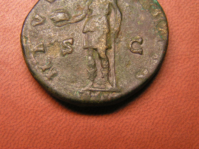 Soviel ich herausfinden konnte, wurde dieser Sesterz 160 geprägt und feiert die Geburt von Annia Galeria Aurelia Faustina, Tochter der Faustina Junior welche die Frau des Marc Aurel war. also einem Enkelkind von Antoninus Pius.