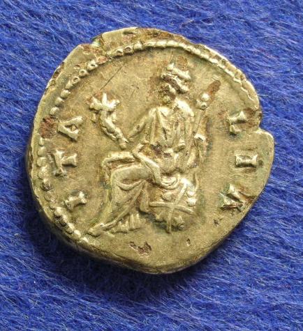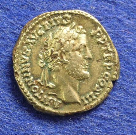 Mitunter bekommt man silberplattierte Münzen von so hoher Qualität, daß man sagen muß: Hier waren echte Profis am Werk, da hatte der Durchschnittsrömer keine Chance. Dieser Antoninus-Pius-Denar (Rs. ITALIA, zu RIC 73) zum Beispiel ist im Stil so gut, daß er, als die Plattierung noch nicht schadhaft war, wohl problemlos für echt durchging. Zumal die Größe mit 18 mm und das Gewicht mit 2,85 g absolut im normalen Rahmen lagen.