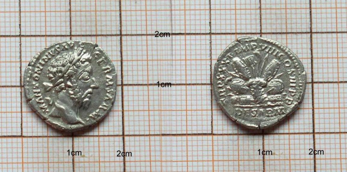 Die zweite Münze wurde ebenfalls unter Marc Aurel geprägt, jedoch für den Sohnemann Commodus: