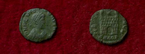Münzen des Flavius Victor sind die letzten in meiner Kaiserreihe der Fundmünzen aus Österreich. Flavius Victor regierte von 387- 388 n.Chr. Er wurde von seinem Vater Magnus Maximus in Trier zum Augustus und Mitregenten ausgerufen. Seine Münzen sind sehr selten und Gold zählt zu den großen Raritäten. Kleinbronze, Aquilaea Av: DN FL VICTOR AUG Drapierte Büste mit zweireihigem Diadem rechts Rv: SPES ROMANORUM/ SMAQP offenes Lagertor mit 2 Türmen, dazwischen Stern