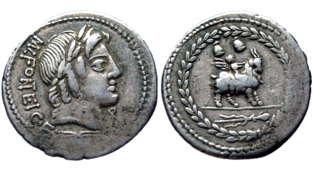An römischen Münzen begeistern mich besonders die Prägungen der Republik bis Augustus. Besonders die Prägungen der späten Republik sind meist reich an Bildsprache bzw. Symbolik, als Beispiel möchte ich einen Denar des Mn. Fonteius aus dem Jahr 85v. anhängen:
