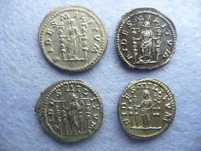 Von daher mal ein Foto mit verschiedenen Büsten - Portraitvarianten und FIDES MILITVM Rückseiten, die