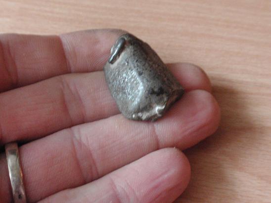 Es ist das Endstück eines Silberbarrens gefunden auf einem Römerplatz! Das Teil wiegt 50 Gramm und hat die typische Barrenform!