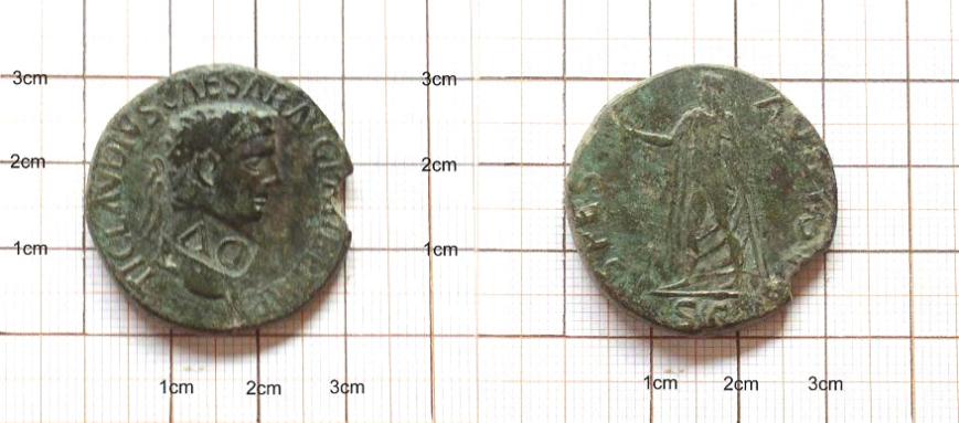 Hier ein gut erhaltener As des Claudius, an dessen Reversdarstellung mich besonders der detailreich abgebildete Mantel fasziniert.