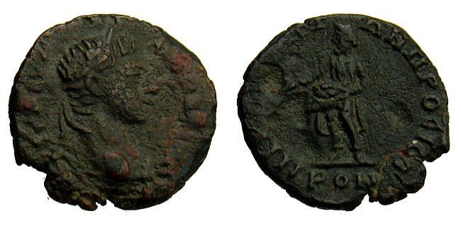 Av.: AVT K M AVPH ANTΩNEINOC; belorbeerter Kopf n. re.