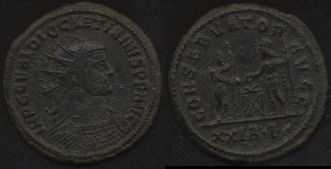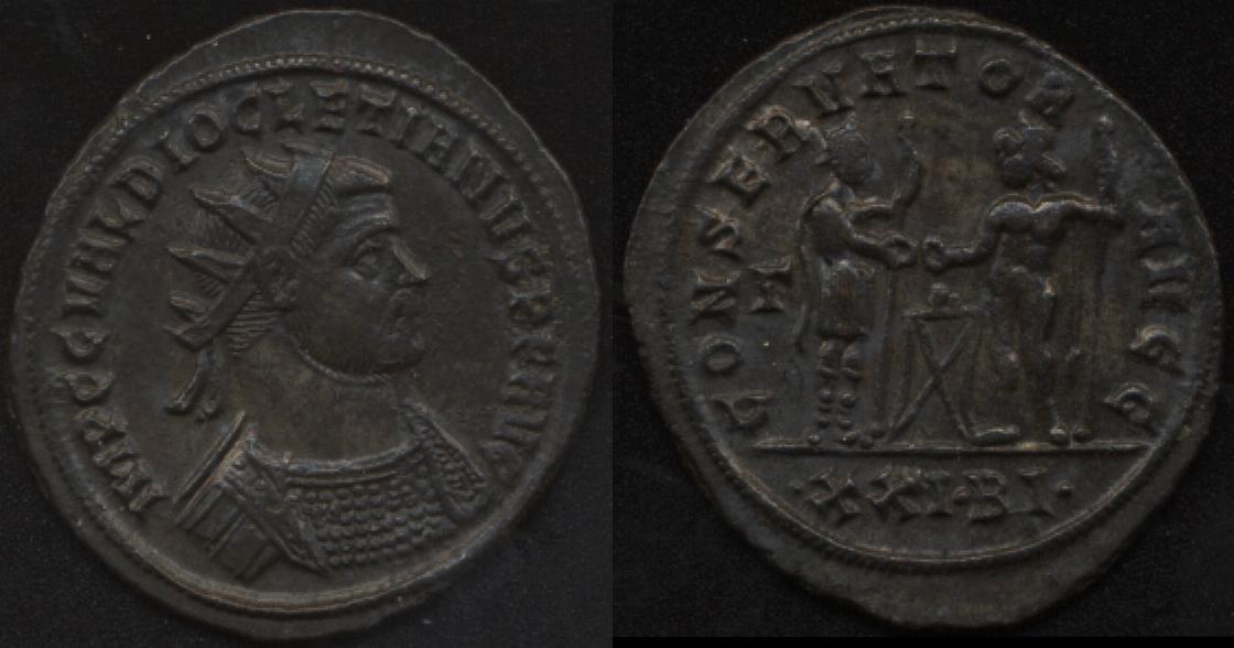 Einen codierten Diocletian-Antoninian, 1. Offizin, andere Verteilung der Abschnittlegende als auf Jochens Exemplar, gibt's gerade hier: http://www.vcoins.com/gitbudnaumann/sto ... duct=10742