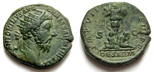 Hier ein numismatisches Zeugnis aus der Zeit Marc Aurels: