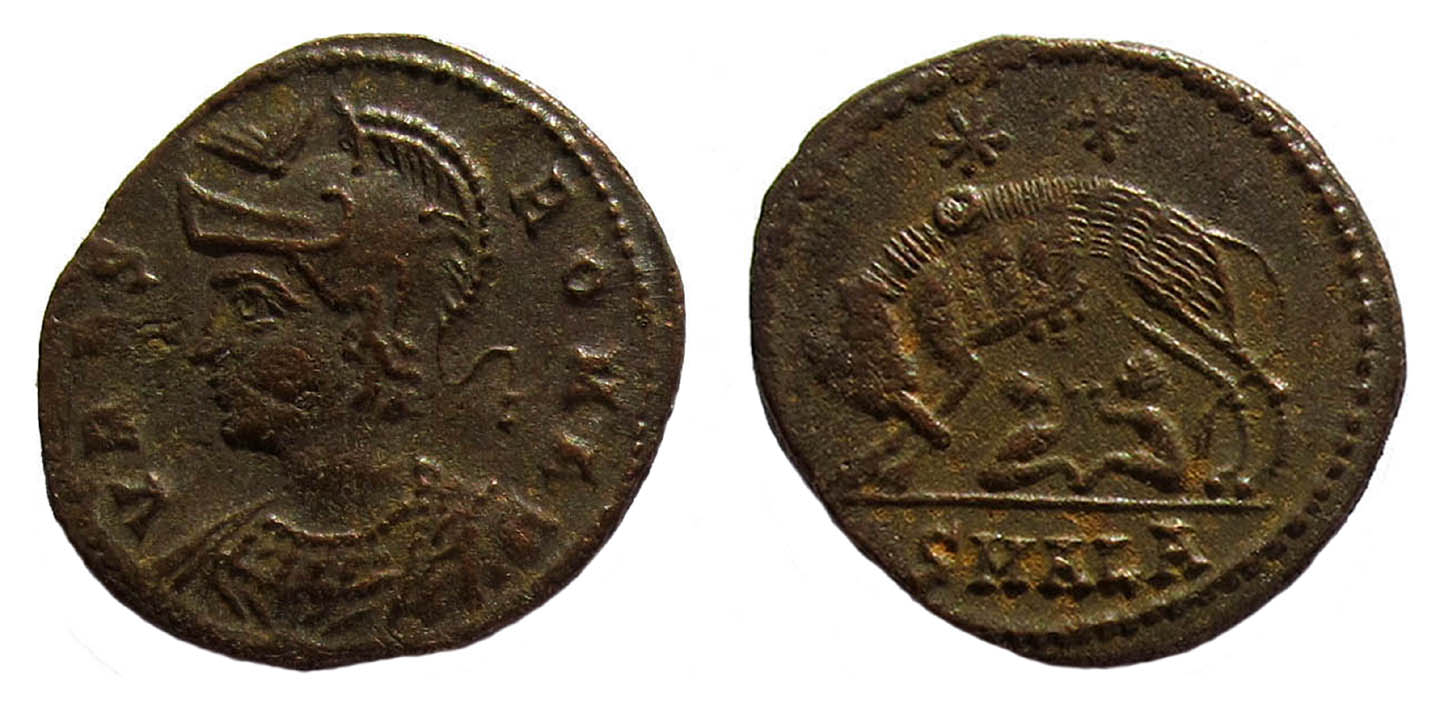 Ein interessantes, numismatisches Phänomen, welches du da ansprichst. Eine Antwort auf deine Frage habe ich aber leider auch nicht. Alles was ich dazu beitragen kann, sind Mutmaßungen meinerseits. Da diese seltsamen Zeichen auf VRBS-ROMA-Folles fast aller Münzstätten auftauchen (Alexandria, Constantinopolis, Cyzicus, Heraclea, Rom, Thessalonica und Trier usw ?), die Schultermarken oder –symbole aber sogar innerhalb der Münzstätten bzw. der einzelnen Emissionen variieren und eine Verwendung als Emissionskennzeichen daher auszuschließen sein dürfte (•SMHЄ•, /TRS etc.), bleiben nicht mehr viele Möglichkeiten übrig.