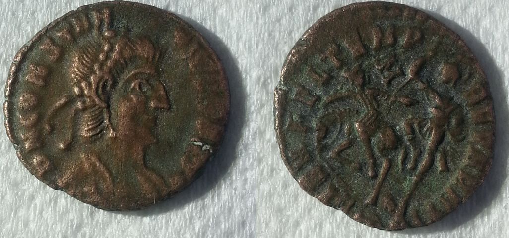 Die 2. Münze ist von Flavius Julius Constans Augustus - hier eine Vergleichsmünzehttp://www.acsearch.info/search.html?search=similar%3A325038#0