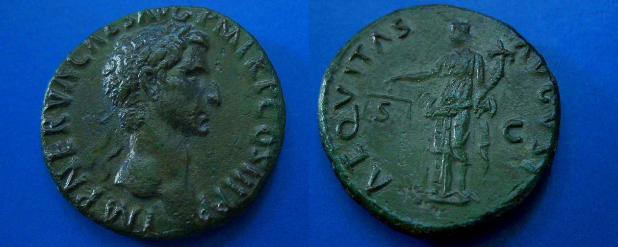 Zu den markantesten Kaiserportraits zählt zweifellos das des Nerva, welches auf den meisten Bronzen noch besser zur Geltung kommt, als auf den Denaren.