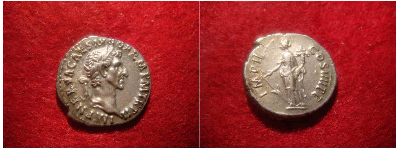 Av.: Kopf des N. nach rechts, IMP.NERVA CAES.AUG.GERM.P.M.TR.P.COS.II.