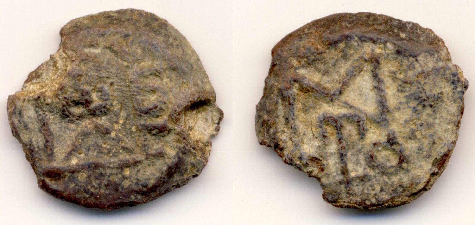 ich weiß, Ihr hockt alle vor dem Fernseher und guckt Euch das Länderspiel Deutschland gegen Finnland an. Da schaue ich auch zwischendurch mal rein, aber vorwiegend sitze ich über den Mitbringseln meiner Reise nach Äthiopien. Das im Anhang dargestellte Objekt habe ich von dort mitgebracht, ohne die geringste Ahnung zu haben, was das sein könnte. Der Ort des Erwerbs ist Axum, obwohl es sicherlich keine axumitische Münze ist. Was ist es dann? Ist es überhaubt eine Münze oder vielleicht eine Nachbildung davon? Ich bin mir nicht mal sicher über das Material dieses Trümmers. Korrodiertes Kupfer? Womöglich Stein?