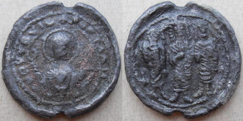 hallo oktavenspringer! was ich sehe, und dein text sagt das dieses stück die fälschung eines byz. bleisigel ist ! 1.kein sigelkanal ! 2. motiv auf av. u. rv, diese kombination ist mir völlig unbekannt !3. das material ist blei, ausser bei kaisersigel die sind aus gold. ich höffe dise infos haben dir etwas geholfen! mbG Nikephoros |
