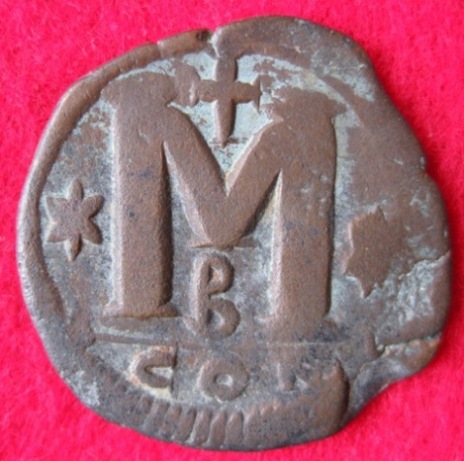 ich habe hier einen Follis von Anastasius (16,15 gr.) ; den finde ich nicht bei Sommer. Sommer hat verschiedene Typen, die sich durch Punkte über oder unter den Sternen auf der Rückseite unterscheiden. Mein Stück hätte die Nr.1,15, aber da hat Sommer kein Off. B.