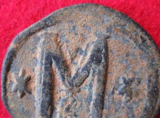 die Sandpatina ist nicht unbedingt schön aber fest. Schrubben allein hilft da nicht . Aber es würde auch nichts nützen. Die Stelle über dem M ist flach; hier ist kein von der Patina überdecktes Kreuz.