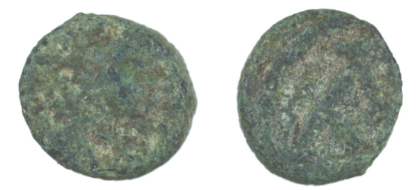 Dateikommentar: Nummus des Justin I. (518-527), Mst. Constantinopel G.: 0,7 gr., Ø 9 mm, AE, M.I.B. 34, Bates 66-71