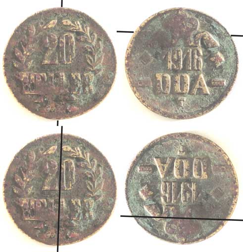 Kehrt eure 20 Heller mahl aus und um. Wer hat noch einer mit französischer Prägung. Bitte stelle Bilder ein.