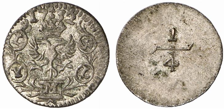 Damit es auch im Forum Deutschland etwas zu raten gibt, stelle ich hier einen silberhaltigen Viertelkreuzer (Pfennig) von 1732 ein. Er zeigt den gekrönten Doppeladler des Reiches auf einem Postament zwischen Zweigen, ganz so wie auf den späteren Konventionsmünzen. Gefragt sind der Münzstand, die Münzstätte sowie der Name des Münzmeisters.