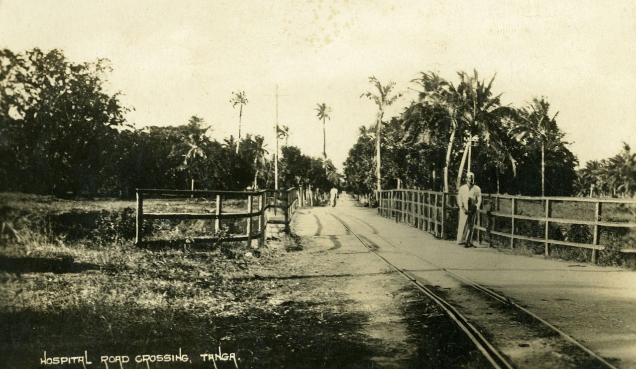 Die Hospital Road, auf dem Bilderpaar 4 gezeigt, heißt auch heute noch so. Sie ist eine Ausfallstraße vom Zentrum Tangas nach Nordosten in Richtung des noblen Stadtteils Ras Kazone. Wir sehen eine Brücke, die den Eisenbahnanschluß vom Bahnhof Tanga zum Hafen überquert und heute deutlich breiter ist als vor 100 Jahren.