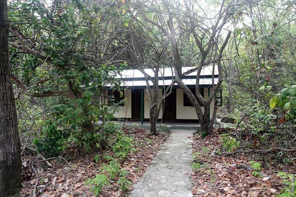 Nachdem wir die Liemba verlassen hatte fuhren wir 1 bis 2 Stunden in absoluter Dunkelheit auf dem See, mir war völlig unverständlich wie der Bootsführer sich orientieren konnte, Sterne waren keine zu sehen. Irgendwann, inzwischen völlig durchnässt von der Gischt, konnte ich ein einzelnes Licht in der Dunkelheit ausmachen, hierauf hielt das Boot nun zu. Nach einer weiteren Stunde (gefühlt), inzwischen hellte sich der Horizont auf, so dass die Silhouette der Bergkette erkennbar wurde, erreichten wir das Headquarter der Parkverwaltung. Da noch niemand anwesend war, bedeutete uns unser Bootsführer hier am Strand zu warten. Nach einer weiteren Stunde erschien ein Mitarbeiter des Parks und nahm uns mit ins Office wo wir unsere Parkgebühren bezahlen konnten, gleichzeitig teilte er uns mit, dass wir nochmals mit dem Speedboot ca. 45 Minuten Richtung Süden zu unseren Unterkünften fahren müssten. Nungut, das nahmen wir auch noch hin, inzwischen waren wir schon 22 Stunden unterwegs. Also wieder ins Boot und Richtung Süden auf die letzte Etappe. Nach knapp einer Stunde landeten wir erneut an einem Sandstrand und luden unser Gepäck aus. Sogleich erschien auch ein Ranger aus dem dichten Wald und begrüßte uns freundlich, er führte uns in das ca. 100-200 Meter vom Strand gelegene Camp. Hier konnten wir unsere Hütten beziehen. Einfache Steingebäude mit einer Holztüre, einem Wellblechdach und Insektennetzen in den Fensteröffnungen aber mit einem richtigen Bett! Ansonsten waren die Gebäude leer!