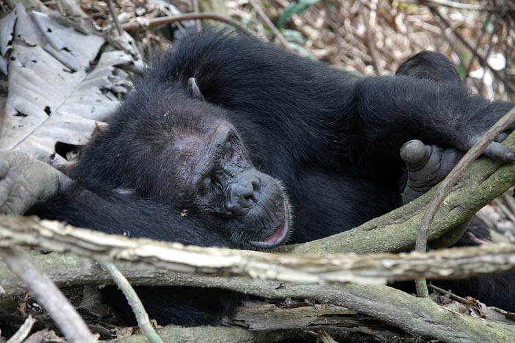 Auf unsere Tour kamen wir teilweise bis auf 2 Meter an die Tiere heran. Interessant waren die detaillierten Informationen zu den Tieren. Unsere Führer kannte alle Tiere der Familie beim Namen und wusste diese ebenso sicher zu unterscheiden wie er auch die Familienverhältnisse untereinander kannte. Nach einer Stunde mussten wir den Kontakt abbrechen, eine länger Verweildauer bei den Tieren war von der Parkverwaltung zum Schutz der Affen untersagt. Nun ging es auf den Rückweg. Am späten Mittag waren wir zurück im Camp. Nach nunmehr fast 30 Stunden auf den Beinen und einer Tour bei tropischem Klima war ich ziemlich am Ende. Jetzt musste ich erst einmal schlafen! Beim gemeinsamen Abendessen, es gab Schwarzbrot, Käse und Wurst aus der Dose, das aus Kigoma mitgebrachte Brot war bereits verschimmelt, zeigte sich das beim derzeitigen Verbrauch unsere Wasservorräte nicht reichen würden. Also wurde für den nächsten Tag Seewasser abgekocht.
