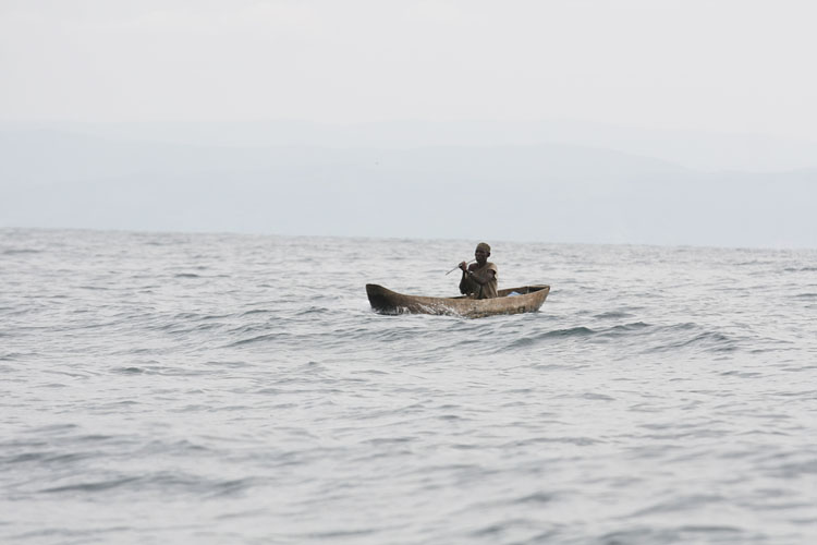 Nachdem wir unser Boot bestiegen hatten ging es also wieder Richtung Norden nach Kigoma. Nun standen uns 11 Stunden Bootsfahrt voraus. Wir fuhren zwischen einigen hundert und einigen tausend Metern vom Ufer entfernt, aber immer in Sichtweite. Ich war erstaunt wie weit raus sich die einheimischen Fischer mit Ihren winzigen Einbäumen auf den See wagten. Immerhin hatte das Gewässer teilweise Wellengang wir man es von der Nordsee her kennt. Nachdem auch der letzte Kanister Benzin vom Bug quer durchs Boot nach hinten gereicht wurde und die Sonne sich schon merklich dem Horizont näherte, erreichten wir den Strand unsere Unterkunft. Mit einem großen Grinsen auf dem Gesicht nahm unsere Bootsführer seine letzten 500$ in Empfang und verabschiedete sich.