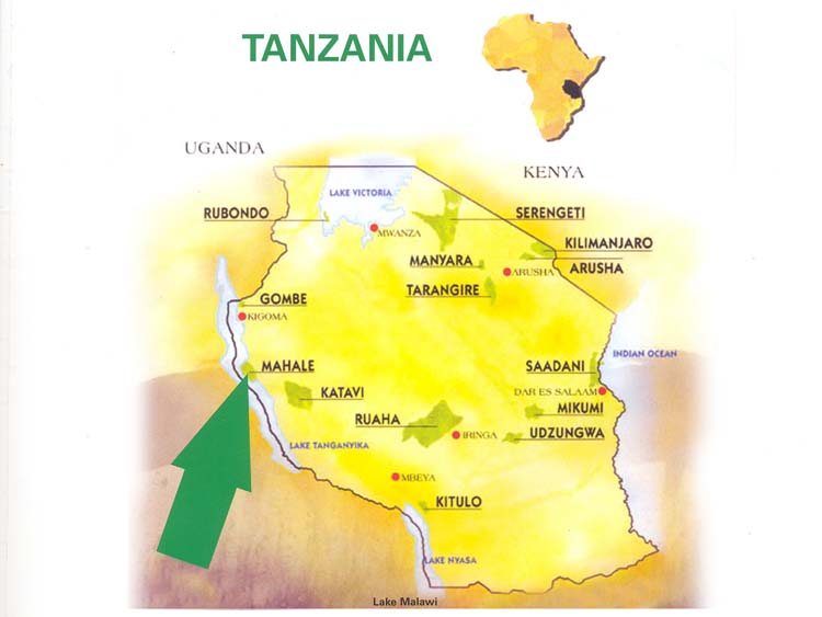 Der Mahale Nationalpark ist der abgelegenste Nationalpark Zentralafrikas. Er liegt auf halber Höhe des Tanganjikasees auf einer in den See ragenden Gebirgskette. Erreicht werden kann der Park nur über den Weg per Schiff und Umstieg auf dem See oder mit einem Buschflieger, eine Straßenverbindung gibt es nicht. Im Süden des Parks gibt es eine Luxus Safari-Loge, hier gibt es auch eine kleine Start und Landepiste für Propellermaschinen. Abschreckend sind die Preise, eine Nacht im Nomad Luxury Tented Camp liegt bei ca. 1000 US$. Wir hatten eine etwas preiswertere Variante gewählt.